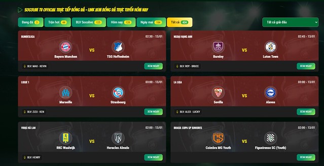 Socolive chiếm dụng phong phú tính năng điển hình nổi bật cá biệt đối cùng đầy đủ nguồn nơi bắt đầu xem soccer trực đường khác. Đầu tiên, Socolive mang đến một kho round đấu mập bệu từ nhiều giải đấu hàng đầu trái đất như Ngoại hạng Anh, La Liga, Serie A, Bundesliga, Champions League, Europa League và phong phú giải đấu khác. Người dùng mà thậm chí đối chọi giản dễ dàng chọn và xem nhiều round đấu tương xứng của cá nhân chúng ta một cơ hội ngay tức khắc và thuận nhân thể. Chất lượng biểu tượng hình hình họa sản phẩm và âm lượng của Socolive cũng là một điểm khỏe mạnh lớn. Các round đấu được phát sóng cùng độ phân giải cao, vứt ra tiết sắc nét, ko phát triển thành thành chiếm lag, mang tới trải nghiệm xem soccer cá biệt cho đầy đủ con cái người xem.